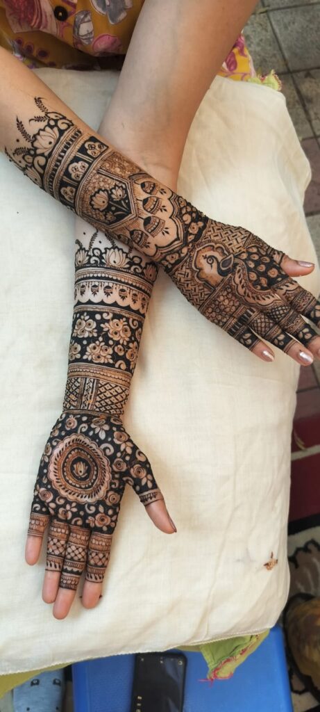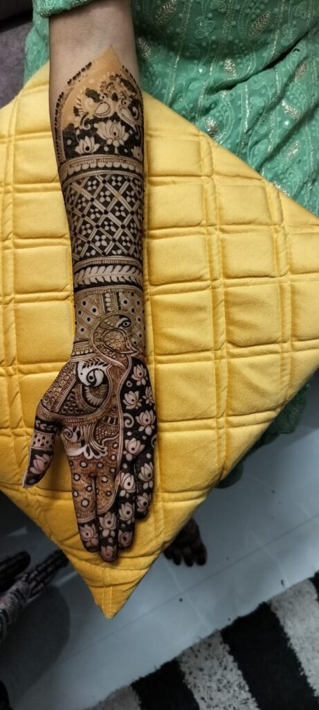 Rashmi is also mehendi artist, known for her intricate designs and flawless execution. Her creativity shines through in every pattern she creates, blending traditional motifs with modern trends to craft unique and stunning designs. Whether it’s delicate bridal mehendi, festive designs, or contemporary styles, Rashmi’s attention to detail and steady hand ensure perfection. Her warm and friendly approach makes the experience enjoyable, leaving her clients not only with beautiful mehendi but also cherished memories. Rashmi truly brings artistry and joy to every occasion!